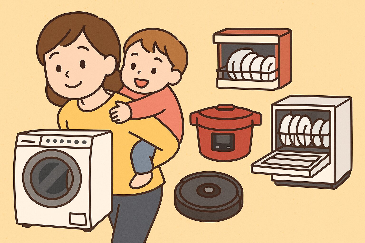 ワンオペ育児は本当に大変ですが、家電の力を借りればグッとラクになります。無理に全部揃える必要はなく、まずは自分が一番つらい家事から便利家電に任せてみるといいですよ。