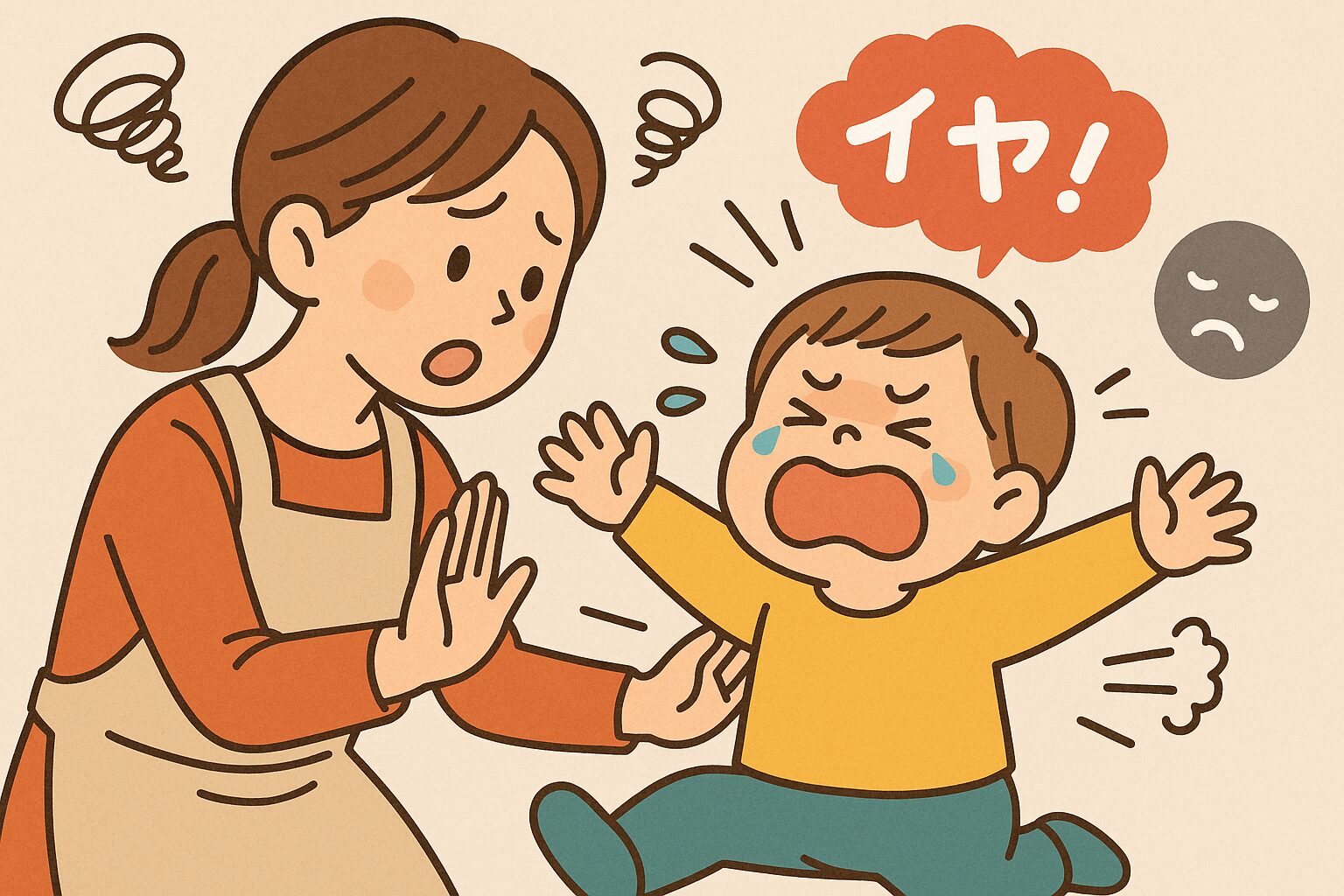 イヤイヤ期は、子どもが「自分でやりたい!」という自我を確立するためのステップです。 親の言葉に反発するのは、反抗ではなく「自己主張の練習」なのです。 この発達を理解しておくことで、イライラの半分は減らせます。